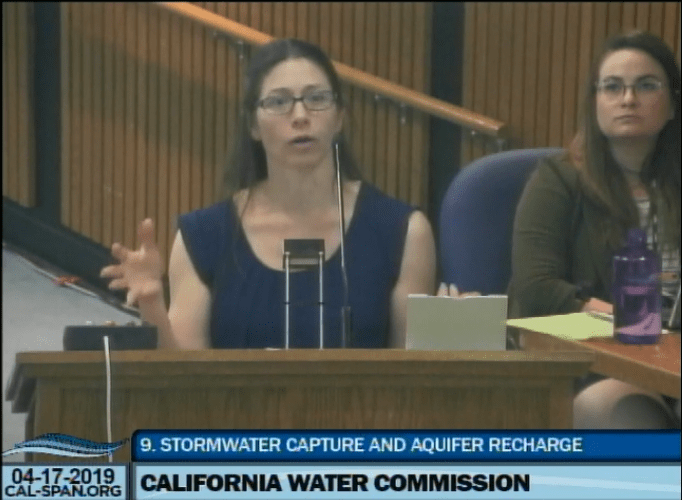 At the April meeting of the California Water Commission, a panel discussed the implementation of stormwater projects across the state. Seated on the panel: