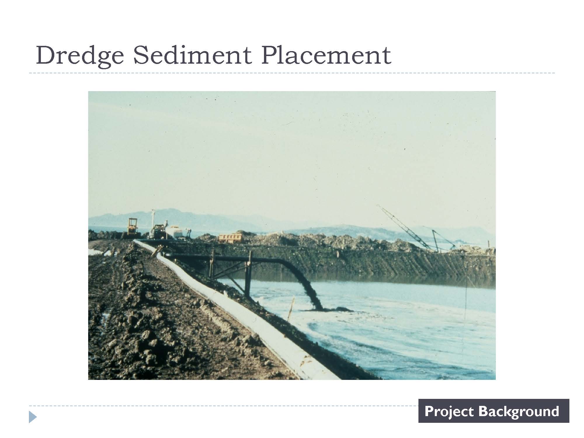 This project is a privately-funded project that works with the Army Corps of Engineers, the Port of Oakland, and other dredging projects to accept sediment, both clean cover sediment and foundation settlement, which is sediment with higher levels of contaminants than what would otherwise be considered clean sediment. The general design of this project to accept the foundation sediments and lay it down very low in the first layer of the marsh lift, then cover it with many, many feet of clean sediment, thereby locking the contaminated sediment down in an anoxic environment and keeping those sediments from reaching areas that would have tidal channel formation cutting through them as well as making it inaccessible to the wildlife and plants.