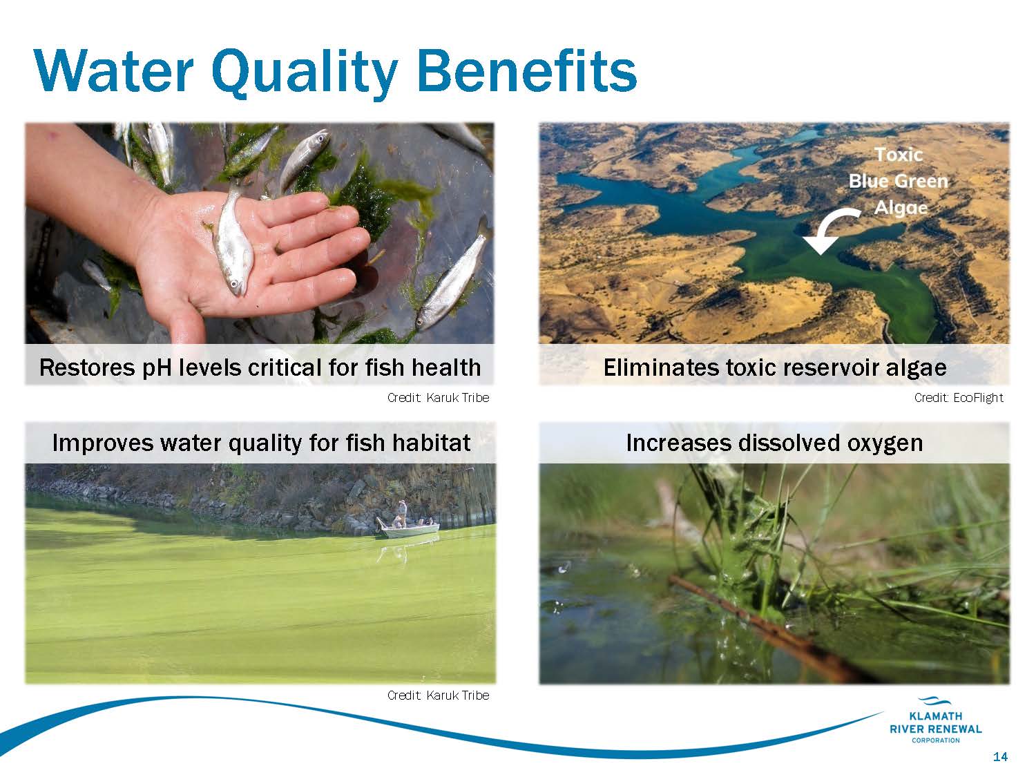 There also will be significant water quality benefits; there is often toxic blue-green algae behind the reservoirs in the summer requiring public health warnings. Restoration will also help with the fish disease problems that have been a problem in dry years.