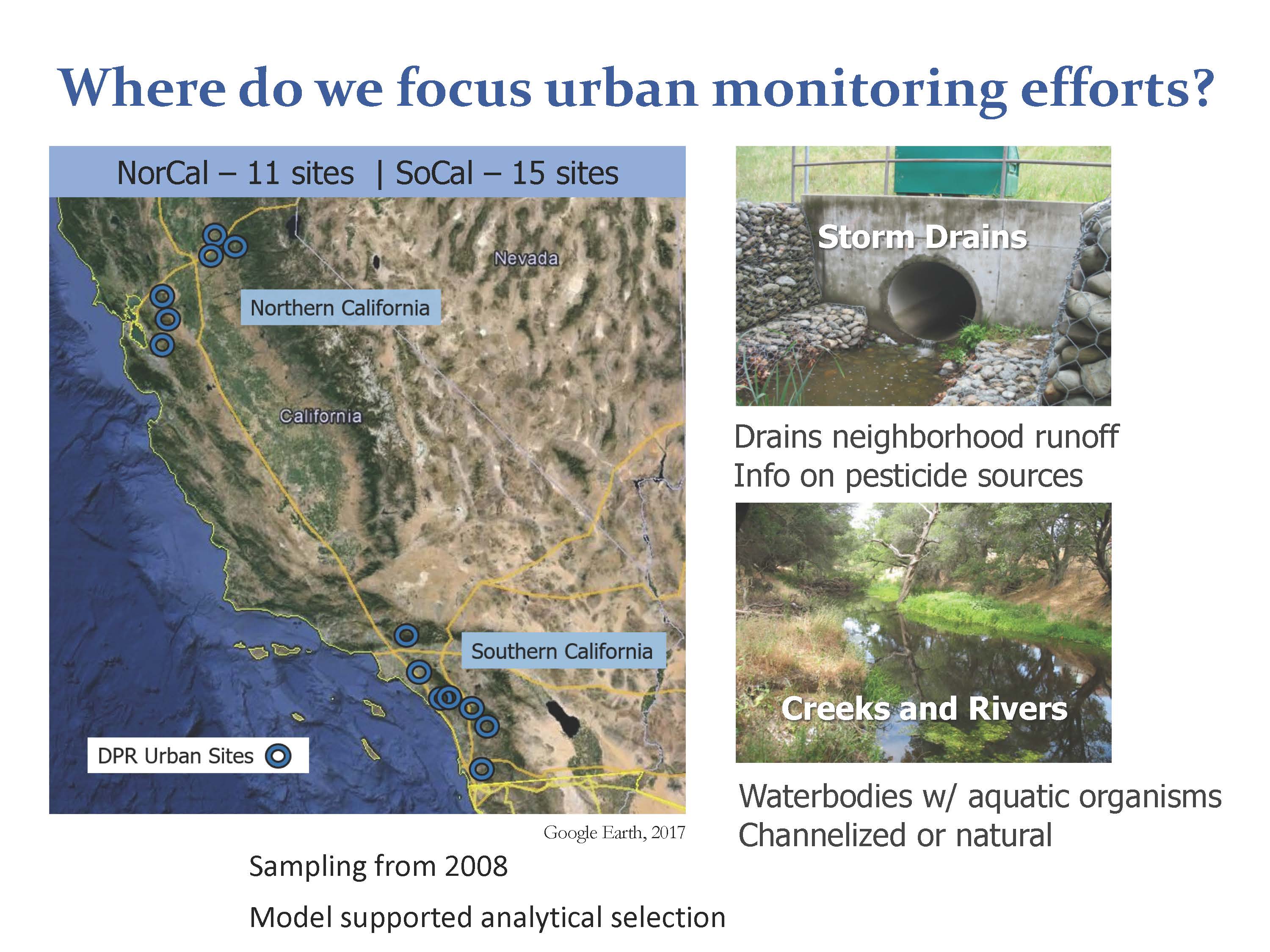 For urban monitoring, they have eleven monitoring sites in Northern California and fifteen in Southern California that they have been monitoring since about 2008. Dr. Teerlink acknowledged it is by no means comprehensive.