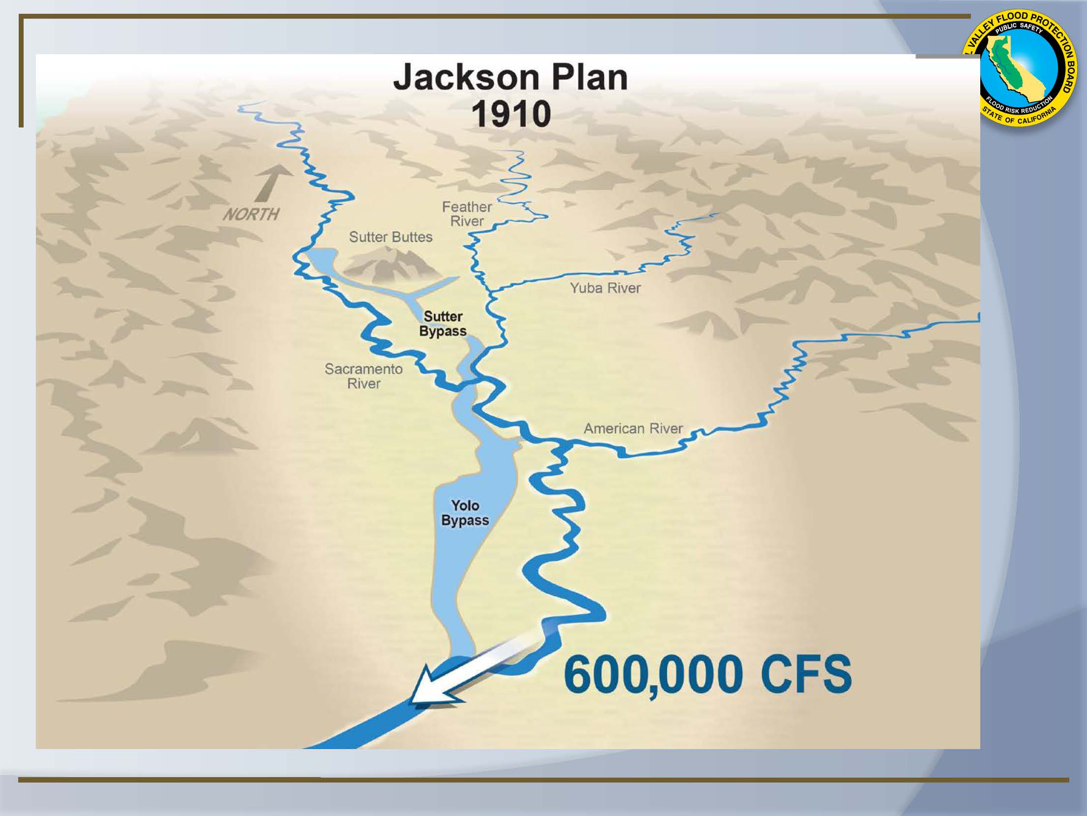 The Jackson Plan was that authorized in 1910 and it was the first federal authorization of the State Plan of Flood Control. In 1911, the Reclamation Board was formed, which was the predecessor to the Central Valley Flood Protection Board.