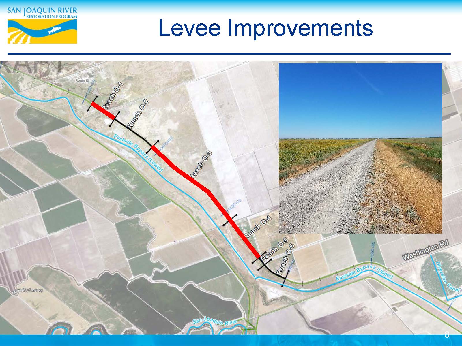 The program also needs to ensure enough habitat for the fish when they return to complete their life cycle, so they are also focusing on increasing safe channel capacity for fish and for the surrounding neighbors along the river, so they are working on seepage and levee stability projects to achieve up to 2,500 cfs capacity in all reaches. Currently, they are working on levees in Reach O and Reach 2B which includes about 10 miles of levee right upstream of Mendota Pool.