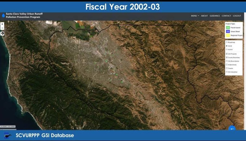 The slide below left shows the green infrastructure projects in Santa Clara County as of 2003; he noted there wasn’t a lot of green infrastructure at the time and almost all of it being parcel-scale.