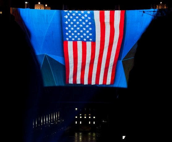 Take a good look at the picture and you will see that it is the flag projected onto Hoover Dam.