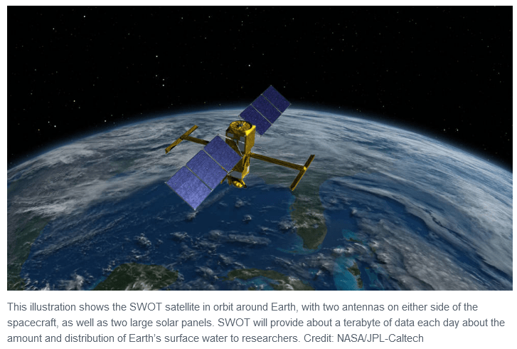 “The Surface Water and Ocean Topography (SWOT) mission took a big step toward launch this week when a team at NASA’s Jet Propulsion Laboratory in Southern California shipped the scientific heart of the satellite to France. A U.S. Air Force C-17 airplane carrying the hardware – which includes finely tuned research instruments – left March Air Reserve Base in Riverside County, California, on June 27. It arrived today, June 30, at a Thales Alenia Space clean room facility near Cannes, France, where engineers and technicians will spend the next year integrating the hardware with the rest of the satellite. … ” Read more from NASA here: Assembly of satellite to track world’s water shifts from US to France