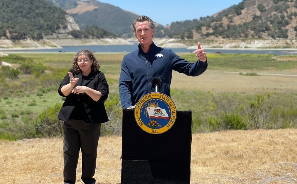 At Lopez Reservoir in San Luis Obispo County, Governor Newsom discusses drought emergency response