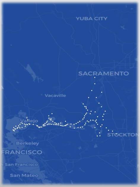The San Francisco Estuary is extensively sampled for fish. The map shows the 421 stations sampled in 2017 by the 14 fish surveys operating for at least 15 to 20 years, representing a vast spatial breadth and density. However, these surveys were generally implemented in a piecework implementation style for specific mitigation and management goals and usually tracked one or very few species.