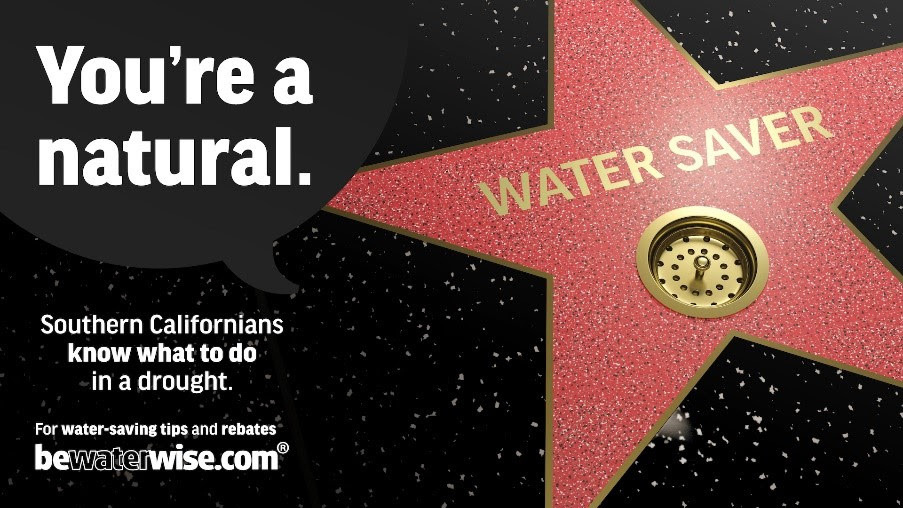 “Inevitable cycles of drought are just as much a part of Southern California as its rich history, world-renowned entertainment industry and action sports culture – all themes that come together in Metropolitan’s latest conservation advertising campaign. The campaign pays homage to the many different lifestyles that make Southern California unique, while empowering residents throughout the region to explore ways to build on their well-established water-saving habits as severe drought conditions impact water supplies throughout the state. “Our campaign is designed to reach diverse audiences with an inspiring message that celebrate both the region’s rich heritage and its dedication and success in conserving water,” said Metropolitan External Affairs Group Manager Sue Sims. “It sets a reassuring tone that reminds all of us that we’ve done this before, we know what to do and we can do it again – together.” …