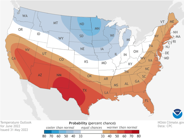 June 2022 U.S. Climate Outlook: Warmth again favored for the southern and eastern U.S.