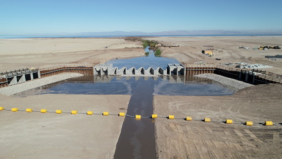 Earlier this month, the New River started flowing through the New River diversion structure at the Species Conservation Habitat (SCH) project. This signifies an important milestone for the SCH project located at the southern end of the Salton Sea. In the coming months, water from the Sea will also be pumped into the diversion structure to be mixed with New River water and then make its way into the habitat ponds. The network of ponds and wetland aim to enhance environmental values while suppressing dust to reduce potential emissions coming from this area. Construction of the SCH project will continue through 2023 and is on schedule for completion by the end of this year. The 4,100-acre SCH is the first of many projects the Salton Sea Management Program (SSMP) team will implement as part of the SSMP Phase 1: 10-Year Plan. Click here to watch a recent video of the New River Diversion structure that was shared on CNRA’s social media accounts.