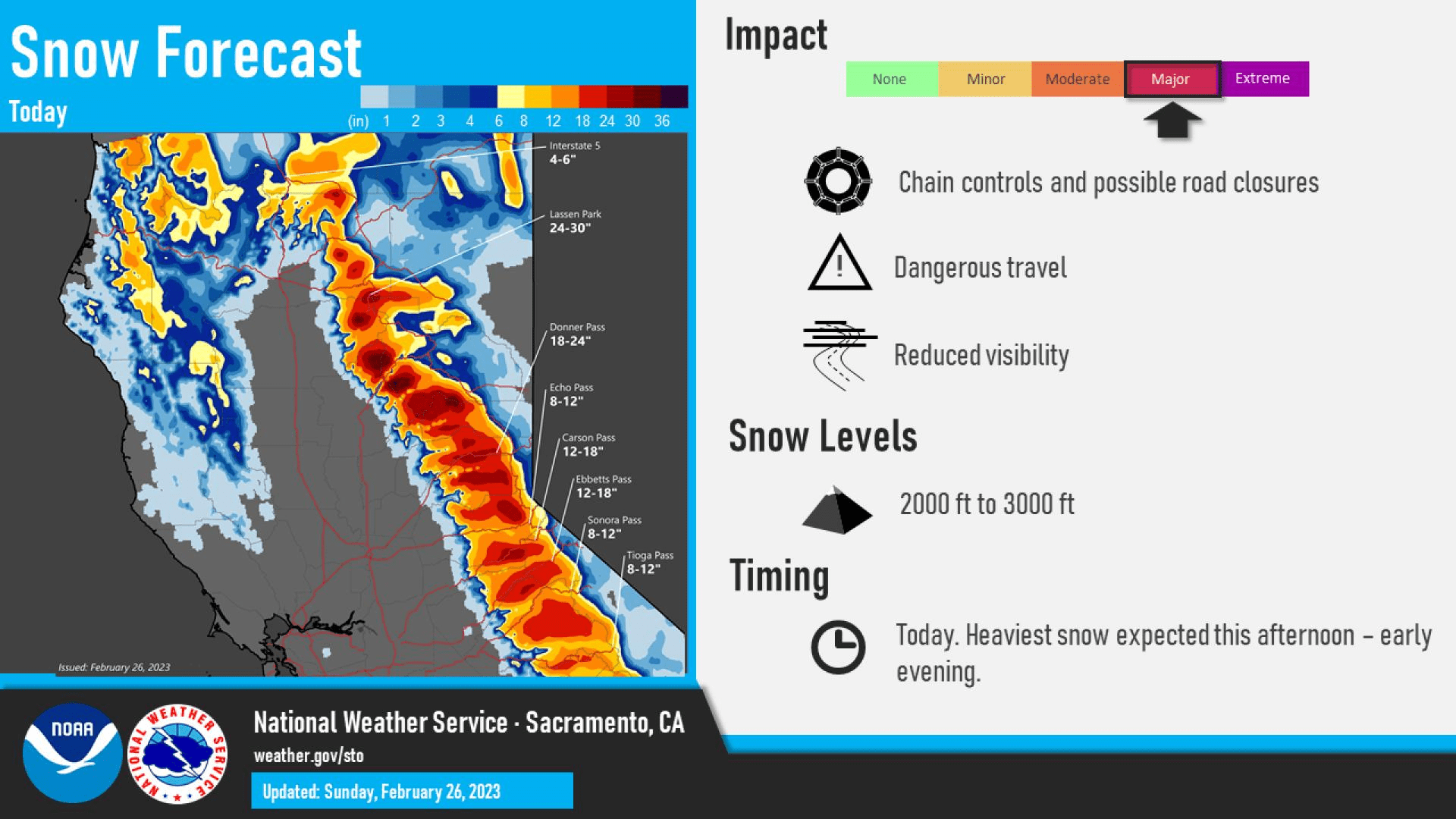 “California’s mountains have seen an epic amount of snow this year. A historic series of storms in December and January built up the state’s snowpack so much that it kicked off February at nearly twice its usual amount. Then the weather turned cold and dry — until this week, that is. The winter storms that brought snow to the Bay Area on Thursday and Friday have added even more to this year’s colossal Sierra snowpack. The UC Berkeley Central Sierra Snow Lab, a research station located on Donner Summit, has recorded 120% of the average snowfall for an entire winter season and 176% of the typical snowfall to date for this time of year, according to a tweet from the lab. … ” Read more from the San Francisco Chronicle.