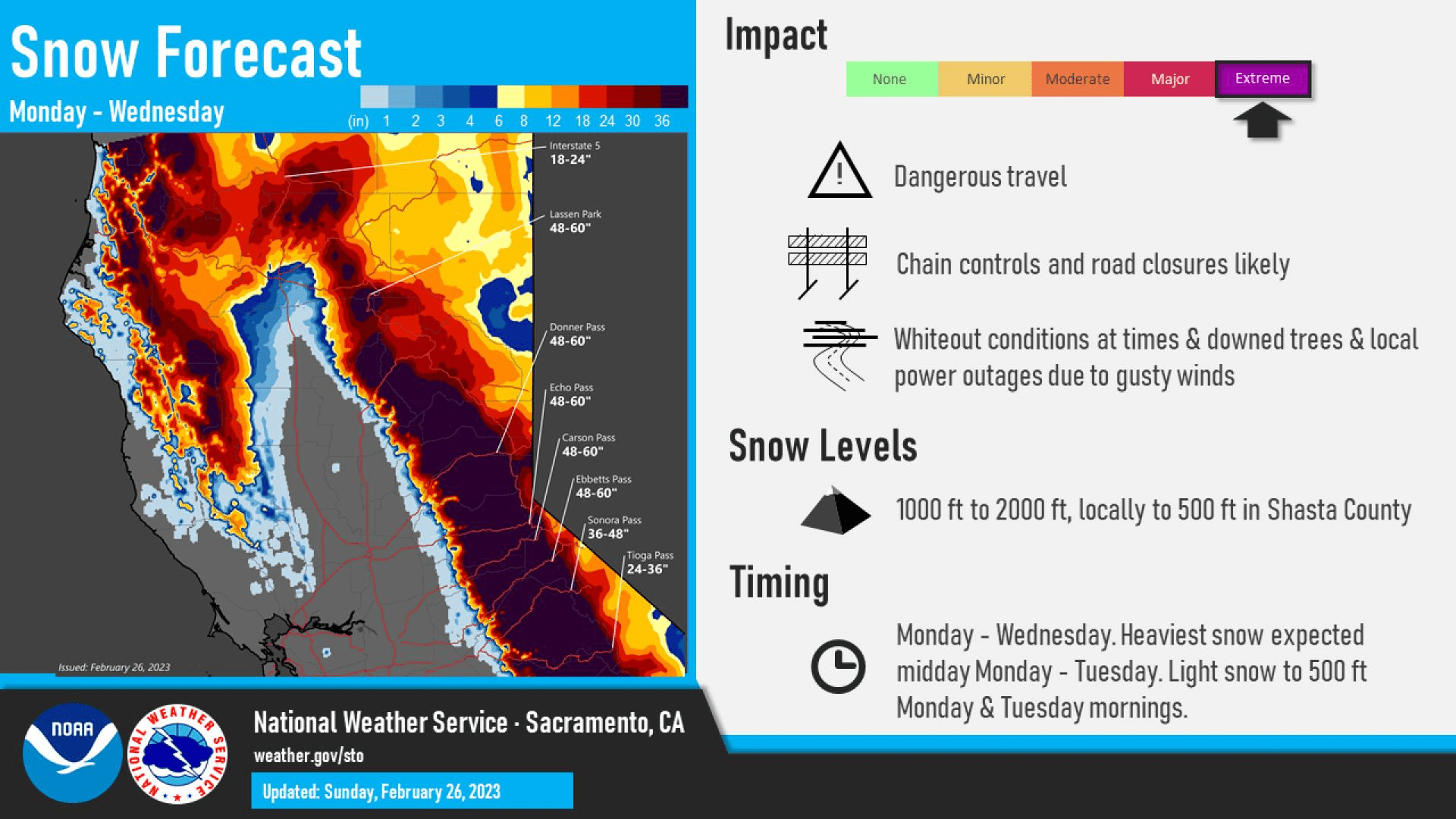 A rare blizzard hits California as summerlike heat roasts the eastern U.S.