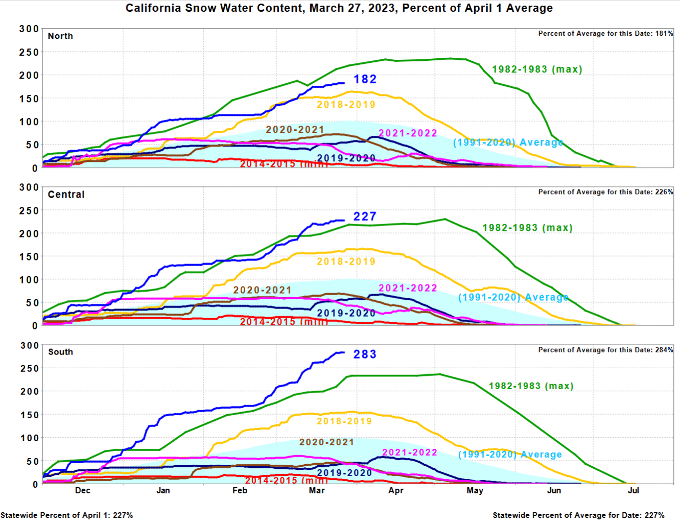 “Call it the Greatest Snow on Earth. Well, at least the largest ever recorded in the state of California. As… yet another atmospheric river speeds toward the Golden State, threatening to deliver several inches of rain to the Bay Area and several new feet of snow to portions of the Sierra by Wednesday evening, the Sierra snowpack is on track to top 1952 as the snowiest season on record. That’s right. The last time California had this much snow at the end of March, Harry Truman was president, gasoline cost 27 cents a gallon, and the film “The Greatest Show on Earth” was No.1 at the box office. … ” Read more from the San Jose Mercury News.