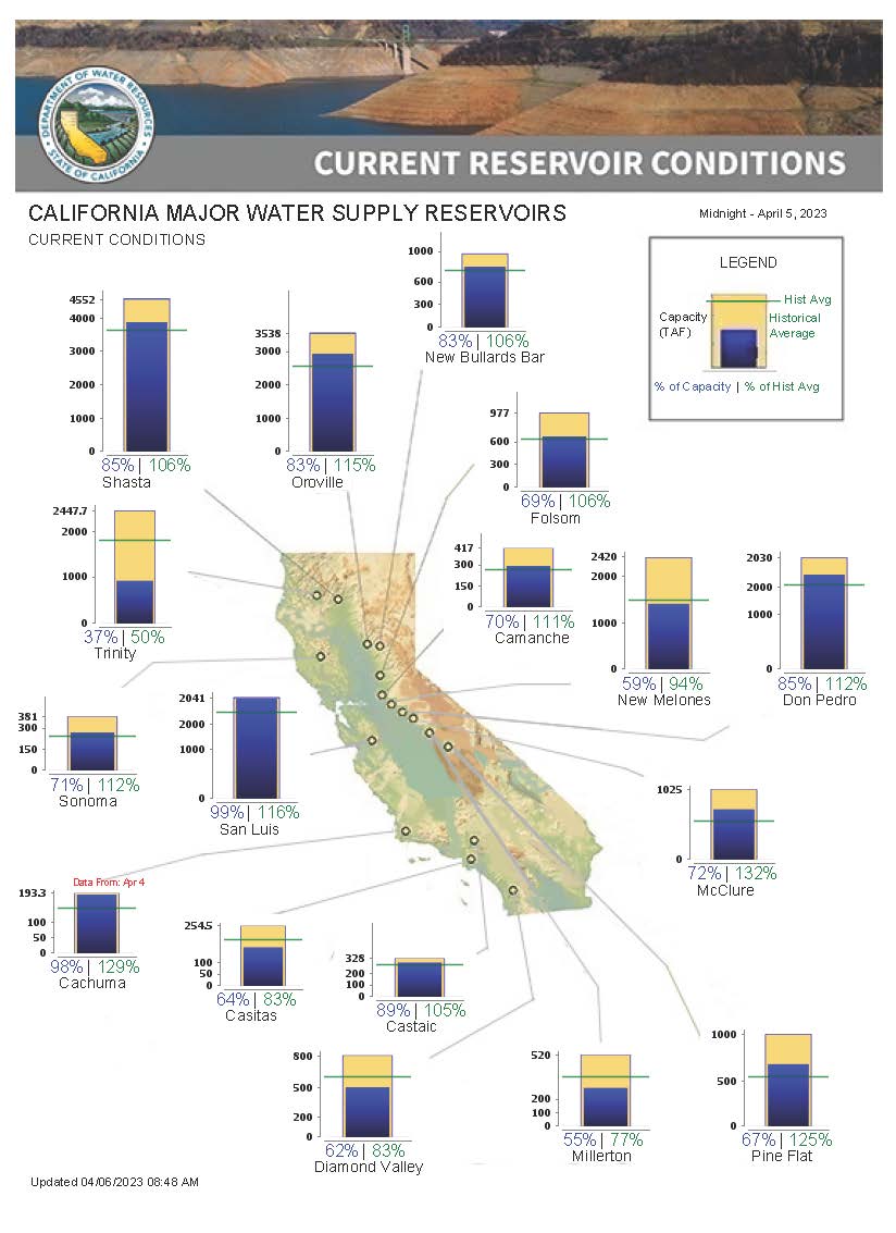 “Water supply in Yuba County is in excellent condition. That was one of the key takeaways from today’s Yuba Water Agency Board of Directors meeting. “After three very dry years, Yuba County’s water supply is in fantastic shape this year, thanks to the exceptionally wet and snowy winter we’ve had,” said Ryan McNally, Yuba Water’s director of water resources and flood risk reduction. In a presentation to the board, McNally described the health of Yuba County’s surface and groundwater supplies and how Yuba Water works closely with its local irrigation partners to manage those supplies. McNally also detailed the agency’s extensive water delivery infrastructure and planned upgrades to ensure continued water supply reliability. … ” Read more from Yuba Water.