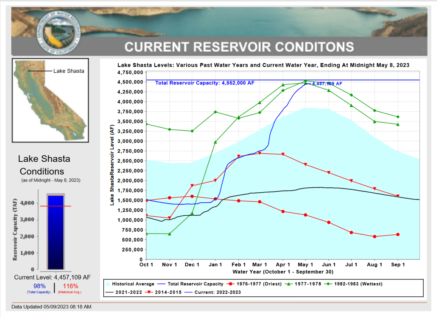 “Recent rain is making its way into local reservoirs, including Shasta Lake, where the pool is almost full. Late season storms like those seen over the weekend and on Monday have brought Shasta Lake to just 3.2 feet from capacity, the highest level in years. “Well, I always say we like more water than less water for our season. We have more water this year than we need, but that’s a great example of what Shasta can do for us,” explained Don Bader, who serves as the Northern California Area Manager for the Bureau of Reclamation. … ” Read more from KRCR.