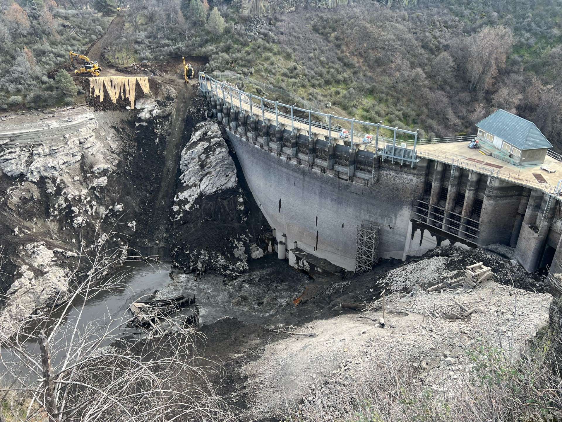 Deconstruction of the Copco No.1 Dam, which will be performed through a repetitive cycle of drilling, blasting, and chipping, can begin before the spring runoff period has concluded because it is a concrete arch dam. So, should the Klamath River experience a significant flow event this spring, water could safely pass over the partially removed concrete dam and the dam would remain securely in place. The Copco No. 1 Dam removal plan was specifically designed to allow for this safe flow passing, should it occur.