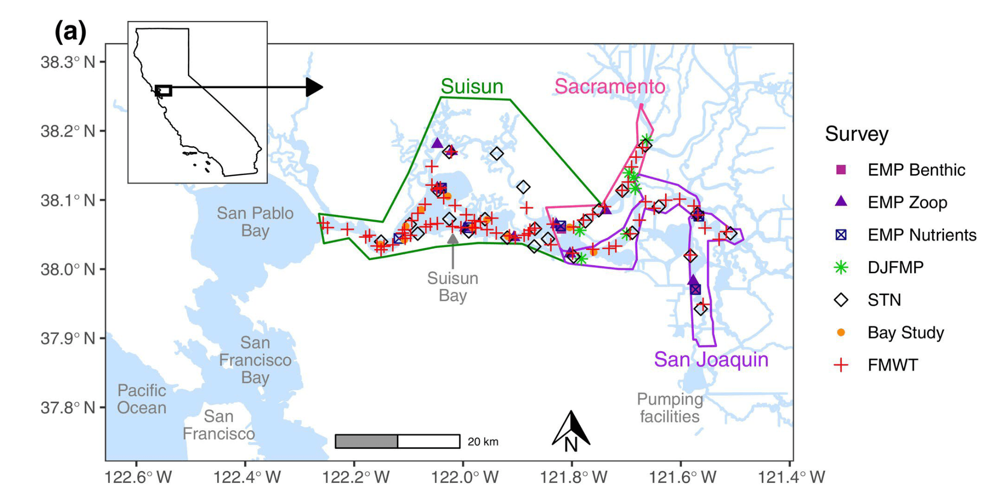 The findings have been published in the Journal of Ecology. The paper, Evaluating top-down, bottom-up, and environmental drivers of pelagic food web dynamics along an estuarine gradient, integrates and synthesizes over 40 years of data from seven monitoring surveys, four regions, and 11 taxonomic groups, resulting in a single long-term dataset that allowed them to model the estuarine food web in ways that had not previously been possible.