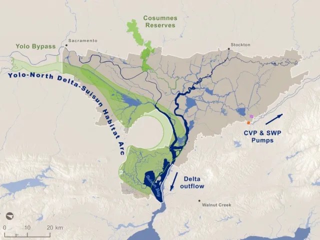 In the Delta and Suisun Marsh, a state Fish Restoration Program (DWR/CDFW) — which has been monitoring 11 mitigation and six reference sites in wetlands since 2015 — is more focused on food-web-related data than the new WRMP.