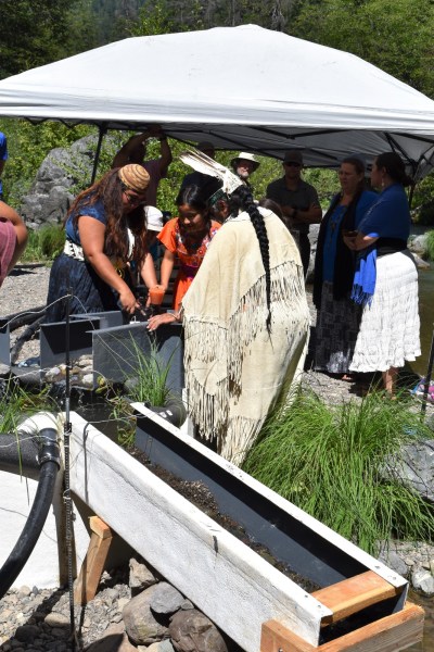 Chief Sisk led a riverside ceremony of song, dance and prayer to welcome the salmon back. “We are asking that the river receive these eggs. We are asking that the old-time ways continue and that they grow in that way,” she said in an agency news release. “We put down that song so they have a fighting chance.” Then Winnemem Wintu children gently placed cups of eggs in the streamside incubator.
