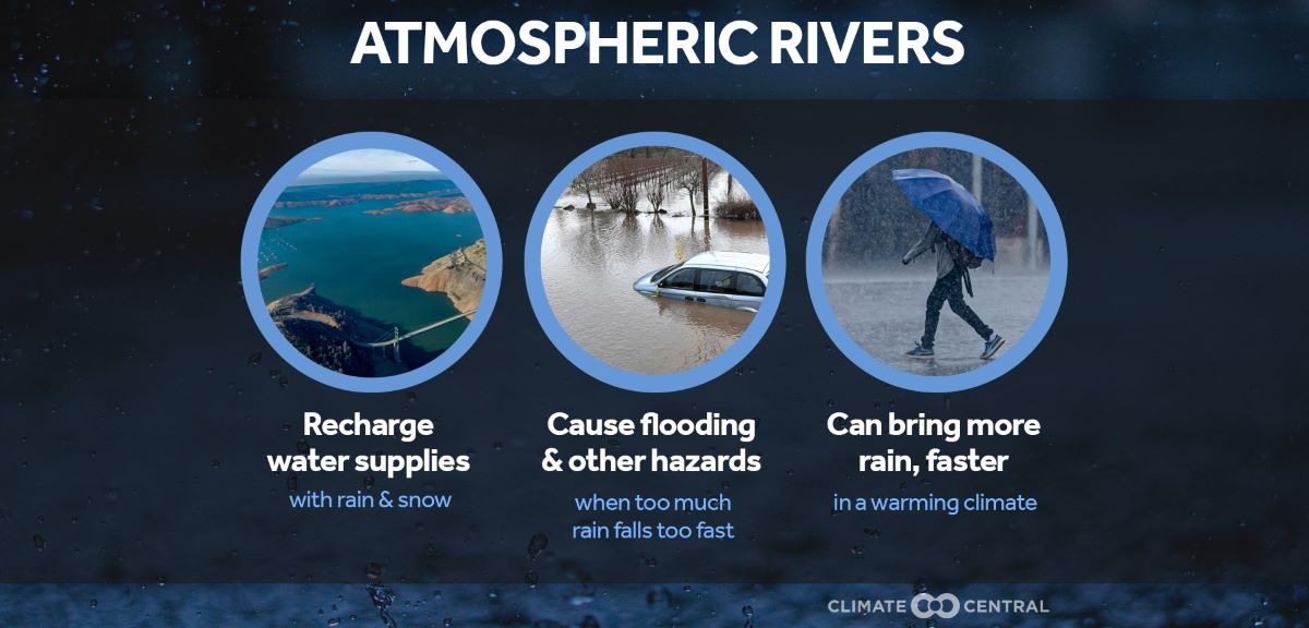By Climate Central KEY CONCEPTS Atmospheric rivers carry vast amounts of moisture globally from the tropics to the poles. On their way through mid-latitudes, landfalling atmospheric rivers can dump intense pulses of rain and snow over U.S. regions including the...