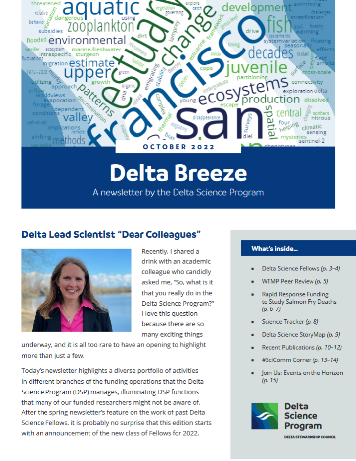 The Delta Science Program has published a new issue of its Delta Breeze newsletter. This edition features a message from Delta Lead Scientist Dr. Laurel Larsen and stories about research funded by the Delta Science Program. The newsletter includes an...