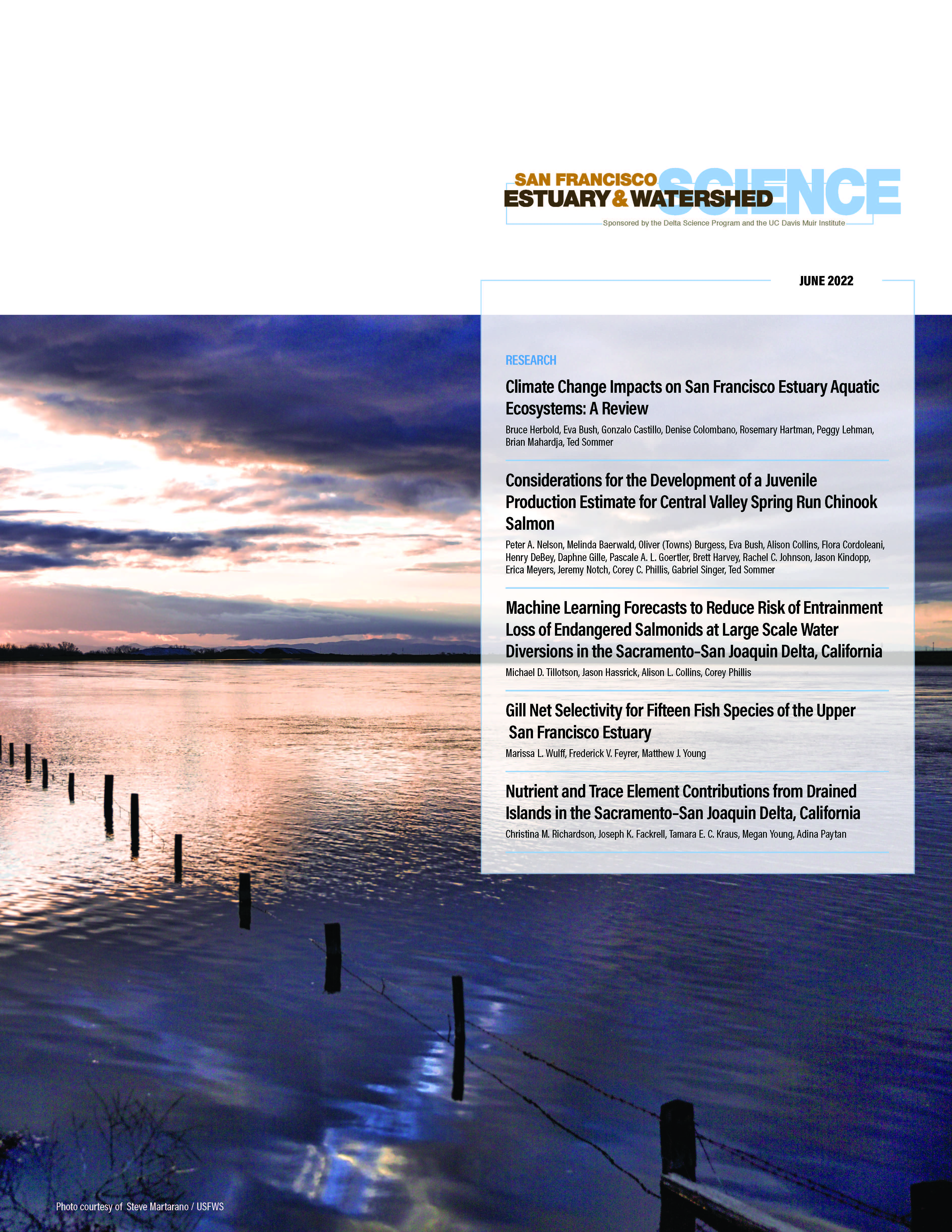SFEWS is the primary applied research publication for the San Francisco Bay and Sacramento–San Joaquin Delta. In this issue: Climate Change Impacts on San Francisco Estuary Aquatic Ecosystems: A ReviewBruce Herbold, Eva Bush, Gonzalo Castillo, Denise Colombano, Rosemary Hartman, Peggy...